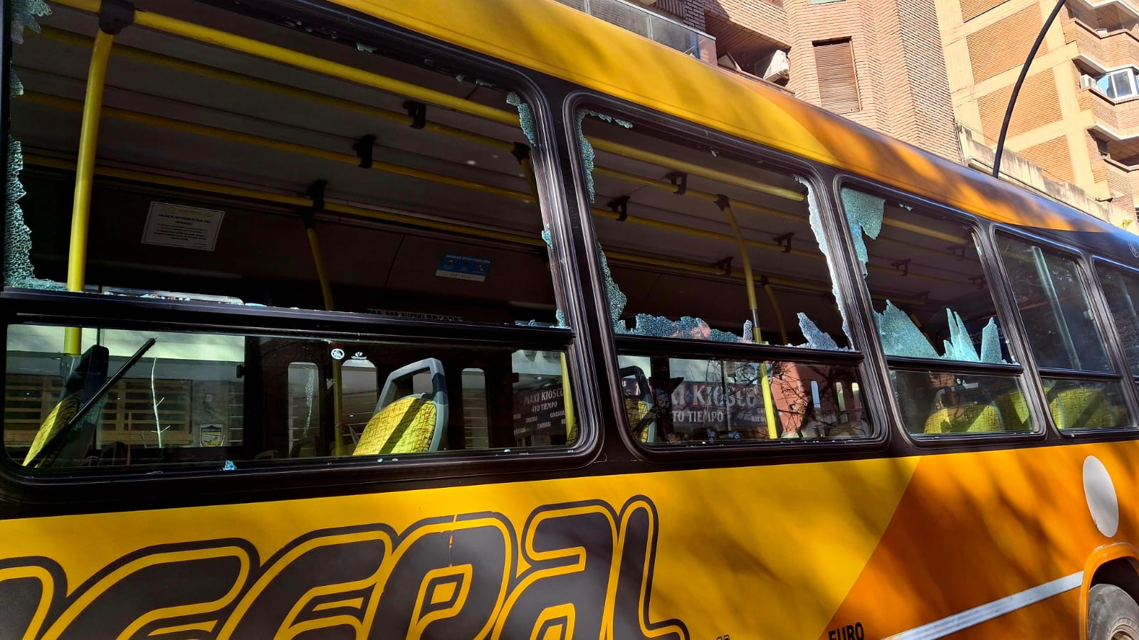 El pasajero arrancó el martillo de emergencia y destrozó ventanillas y la puerta del colectivo.