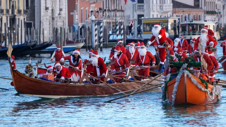 CIENTOS DE PERSONAS VESTIDAS DE PAPÁ NOEL EN VENECIA