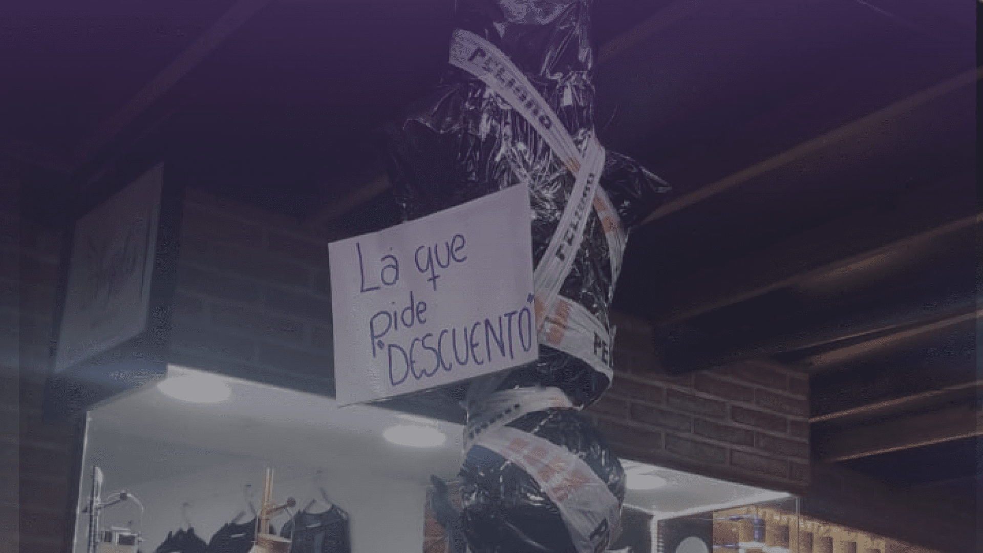 Durante las últimas semanas, en nuestro país circularon una serie de publicidades y eventos que ponían a la mujer como ejemplo de víctima de violencia. Y ahora, en una galería comercial de San Salvador de Jujuy, un local exhibió un maniquí colgado, envuelto en una bolsa de consorcio, bajo el lema «La que pide descuento».