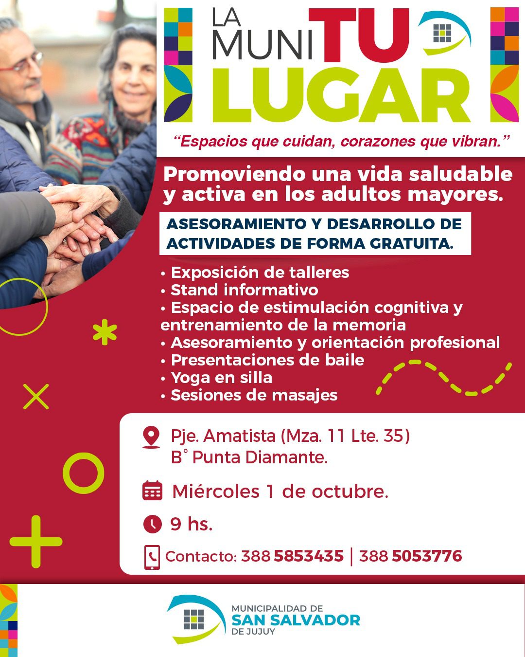 Con el objetivo de promover una vida activa y saludable en las personas adultas mayores, la Municipalidad de San Salvador de Jujuy llevará adelante una jornada gratuita de asesoramiento y desarrollo de actividades en el barrio Punta Diamante.