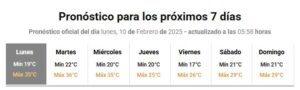 Para el martes la máxima llegará a los 36°C con una mínima de 22°. En tanto el miércoles la temperatura se mantendrá en una máxima de 35 con una mínima de 20.